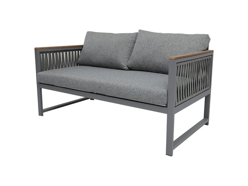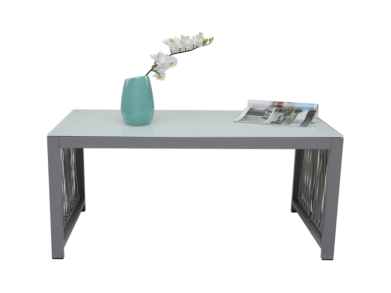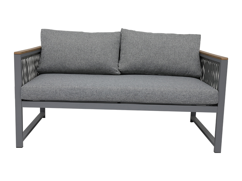 | Specifikation | aluminiumsramme med vævet reb, 4 stk i alt; loveseat: L70*B132*H69cm, 1PC enkeltstol: L70*B70*H69cm, 2STK sofabord:L100*B50*H46cm, 5mm hærdet hvidt glas, 1PC |
